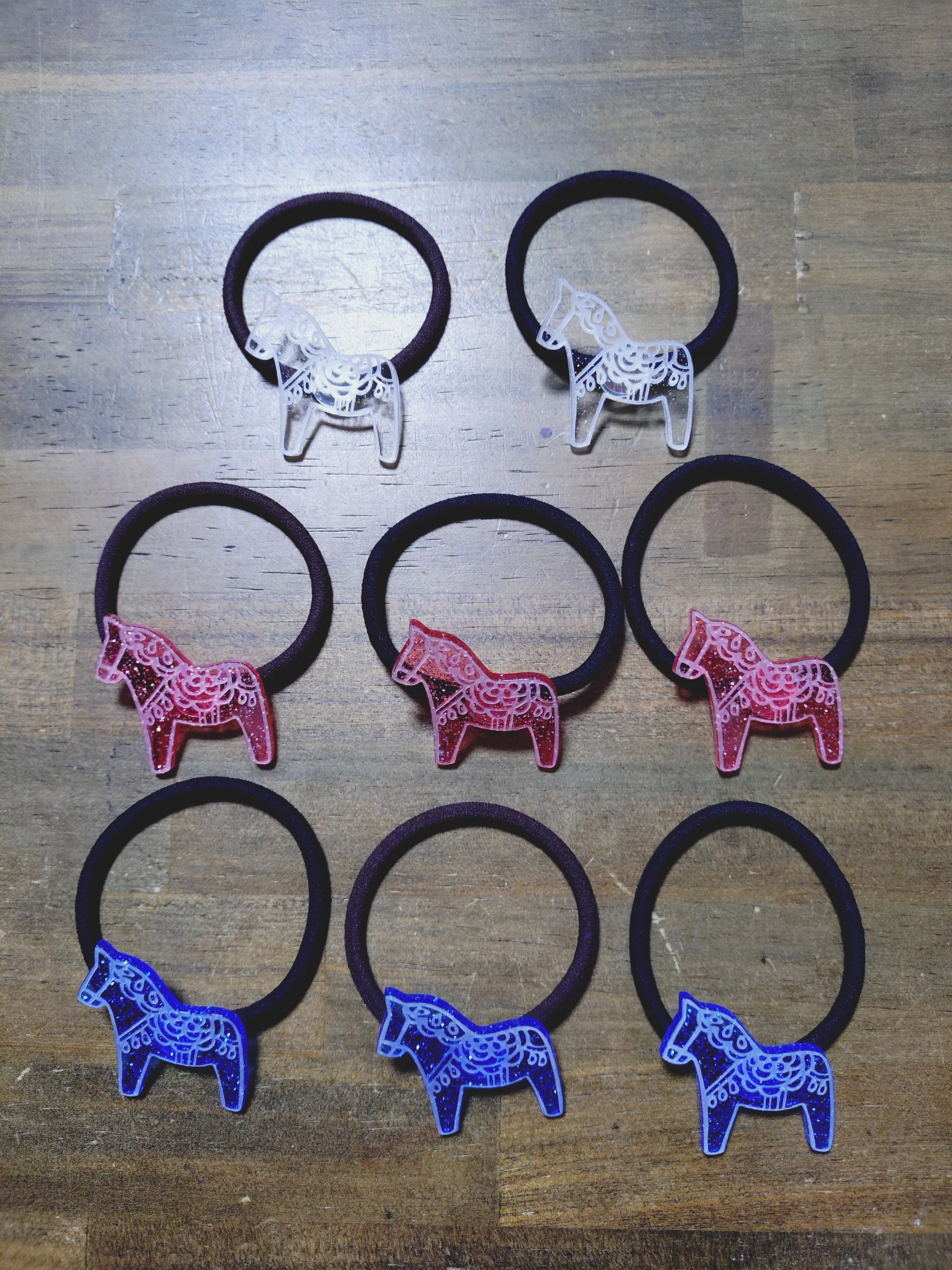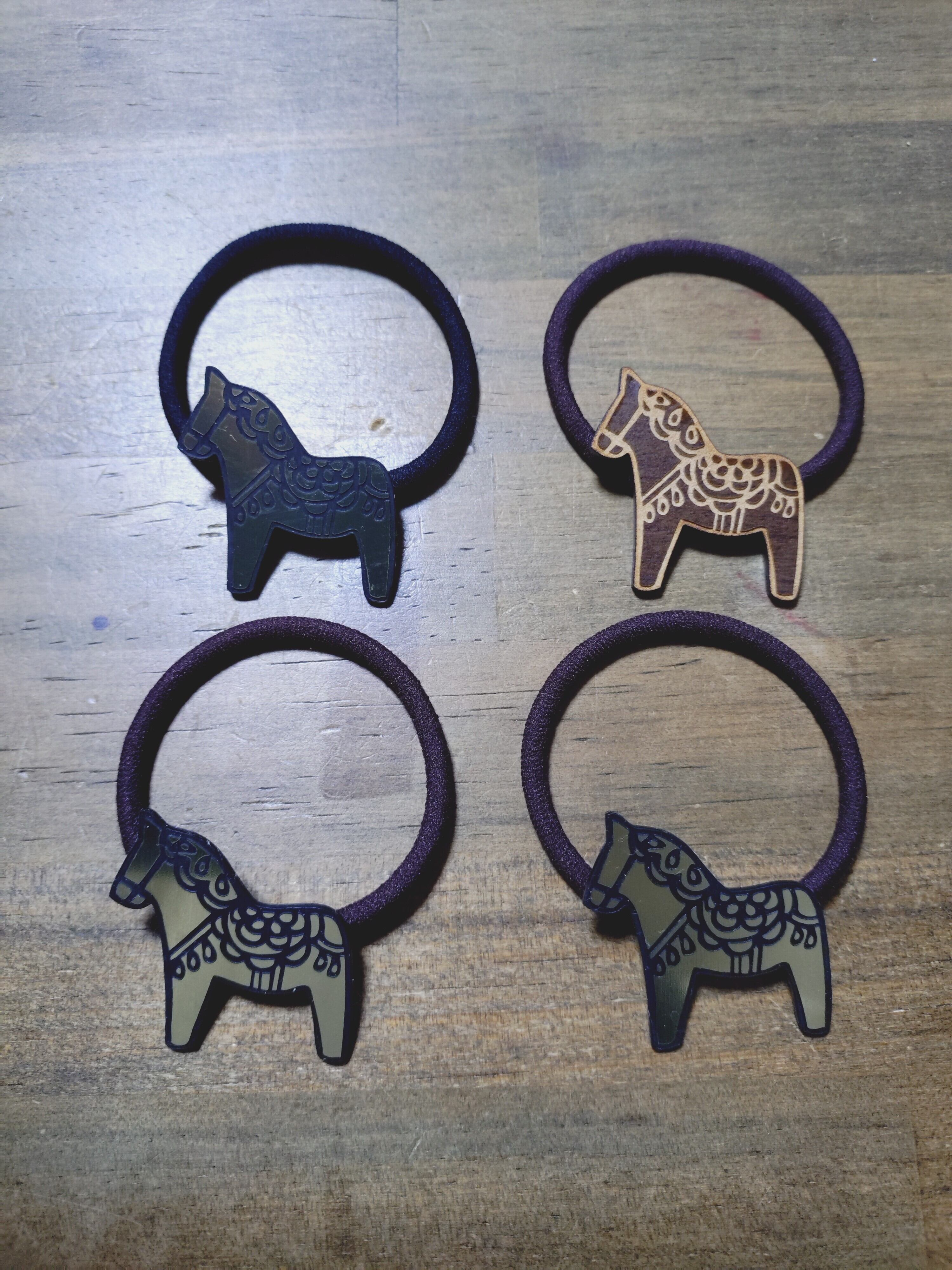 オリジナル ロゴヘアゴム ラメ,木,金銀 ダーラナホース