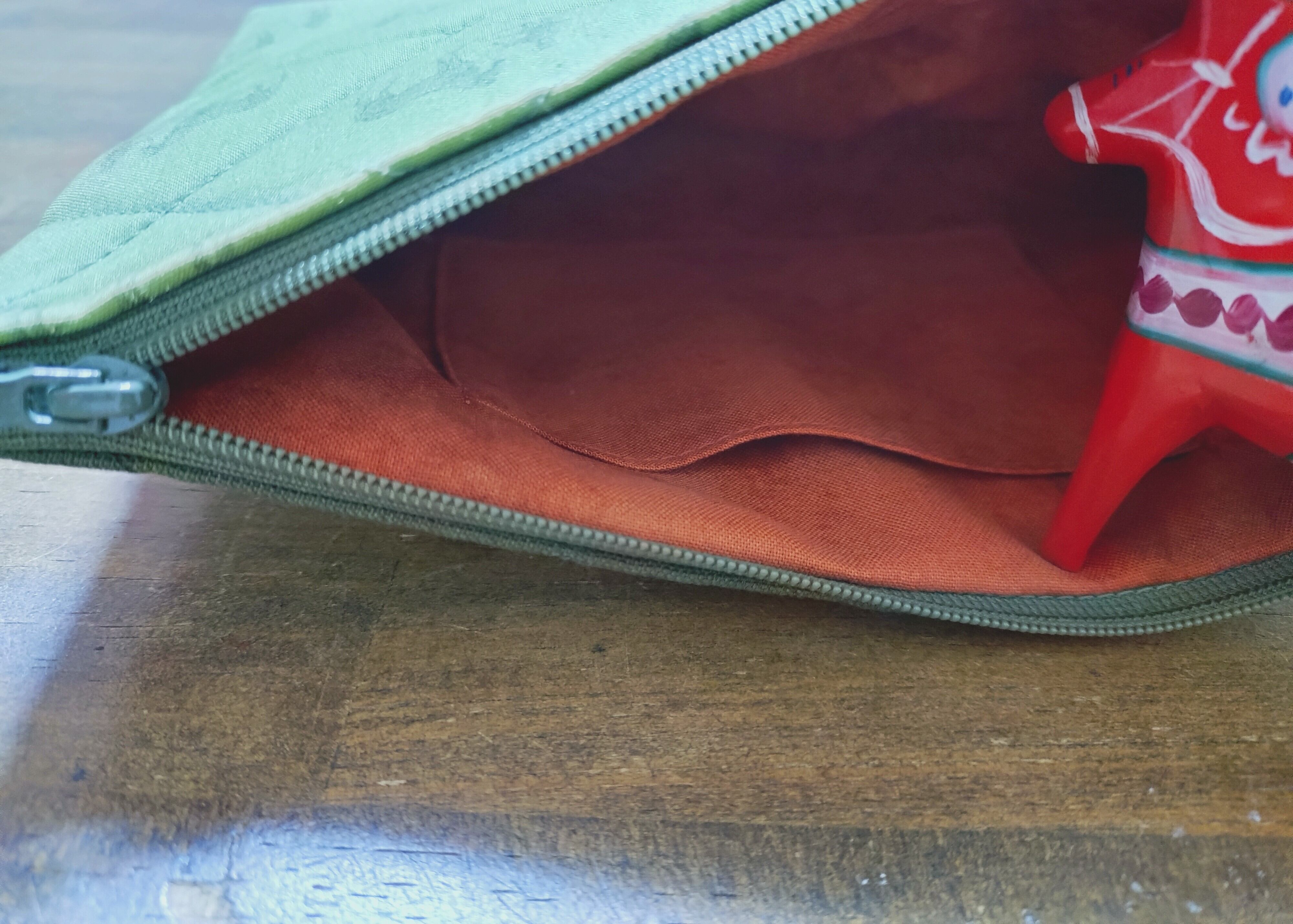馬柄の20㎝ファスナーキルトポーチです。
